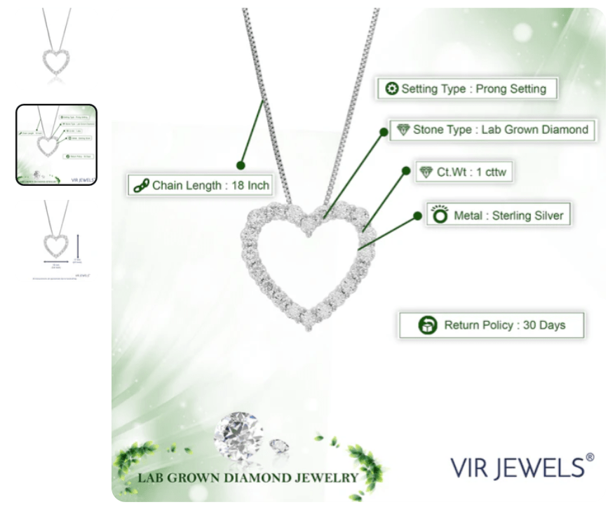 - Exceptional Quality: Each lab grown diamond from Vir Jewels is graded for cut, color, clarity, and carat weight, ensuring that customers receive a gemstone of exceptional quality. Their necklaces are designed to highlight the natural beauty of the diamonds, resulting in pieces that are both beautiful and durable.